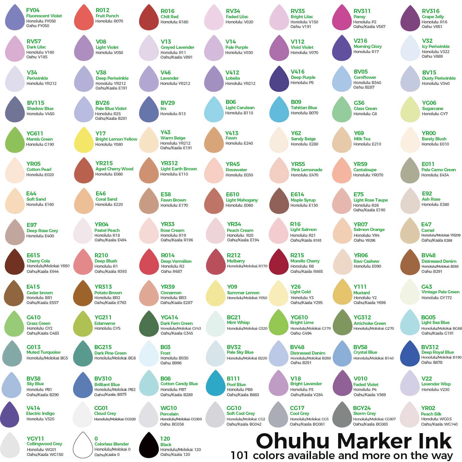 Refill Ink for Ohuhu Alcohol-Based Markers – Honolulu (B), Honolulu Plus, Honolulu S, Oahu, Kaala (B) & Molokai