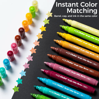 Ohuhu Acrylic Metallic Glitter Markers, 24 Colors - 0.7mm & 3mm Tip Paint Pens