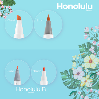 Honolulu B: Perfect for beginners, featuring a round ergonomic design with flexible brush and fine double tips.