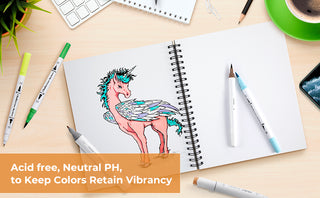 This 120LB (200GSM) heavyweight sketchbook paper offers a durable yet delicate surface perfect for producing clean artwork. This paper prevents bleeding, smudging and feathering, making it an ideal choice for a variety of dry art media including alcohol markers, solvent markers, colored pencils, charcoal, pastels and inks.